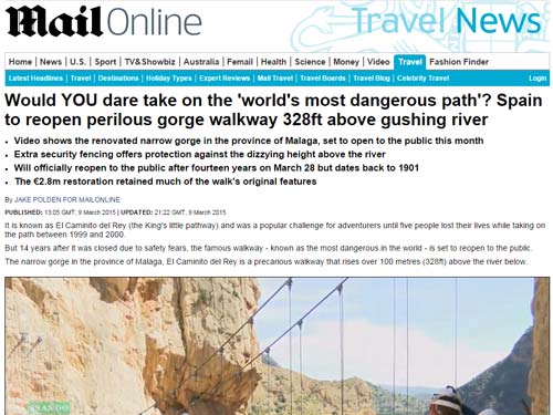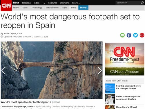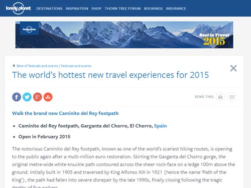 El interés por el recorrido no sólo se ha extendido a toda España. Guías de viajes y medios internacionales también se han hecho eco de la reapertura del hasta ahora 'sendero más peligroso del mundo'. Es el caso de la popular guía 'Lonely Planet', que la ha catalogado como "experiencia imprescindible para 2015", junto a otras como la Cueva de Hielo en Islandia o el Observatorio del Mundo de Nueva York, en el World Trade Center. Otros medios internacionales también han publicado reportajes sobre la rehabilitación.