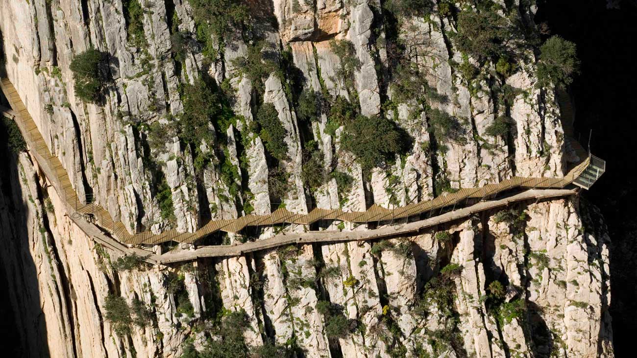 El elemento más característico del recorrido del Caminito Rey es el puente sobre el Desfiladero de los Gaitanes, que ha pasado a llamarse Puente de Ignacio Mena, en recuerdo a un diputado provincial fallecido. Su construcción, lejos de lo que pudiera parecer a primera vista, no ha implicado un riesgo extra, según quienes han participado en el montaje. El helicóptero iba descolgando las piezas que ya venían preparadas y que un equipo de alpinistas ensamblaba a más de cien metros de altura.