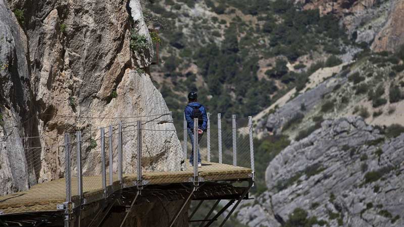Pese a ello, el Caminito del Rey no es un paseo por el monte. Las pasarelas, el puente colgante a 105 metros de altura y las paredes escarpadas crearán una inevitable sensación de vértigo. Los visitantes no estarán arriesgando sus vidas (nada más lejos de la realidad), pero sí hay que ser consciente de que impactará a aquellos usuarios más impresionables. Ése, de hecho, es el gran atractivo del Caminito del Rey.